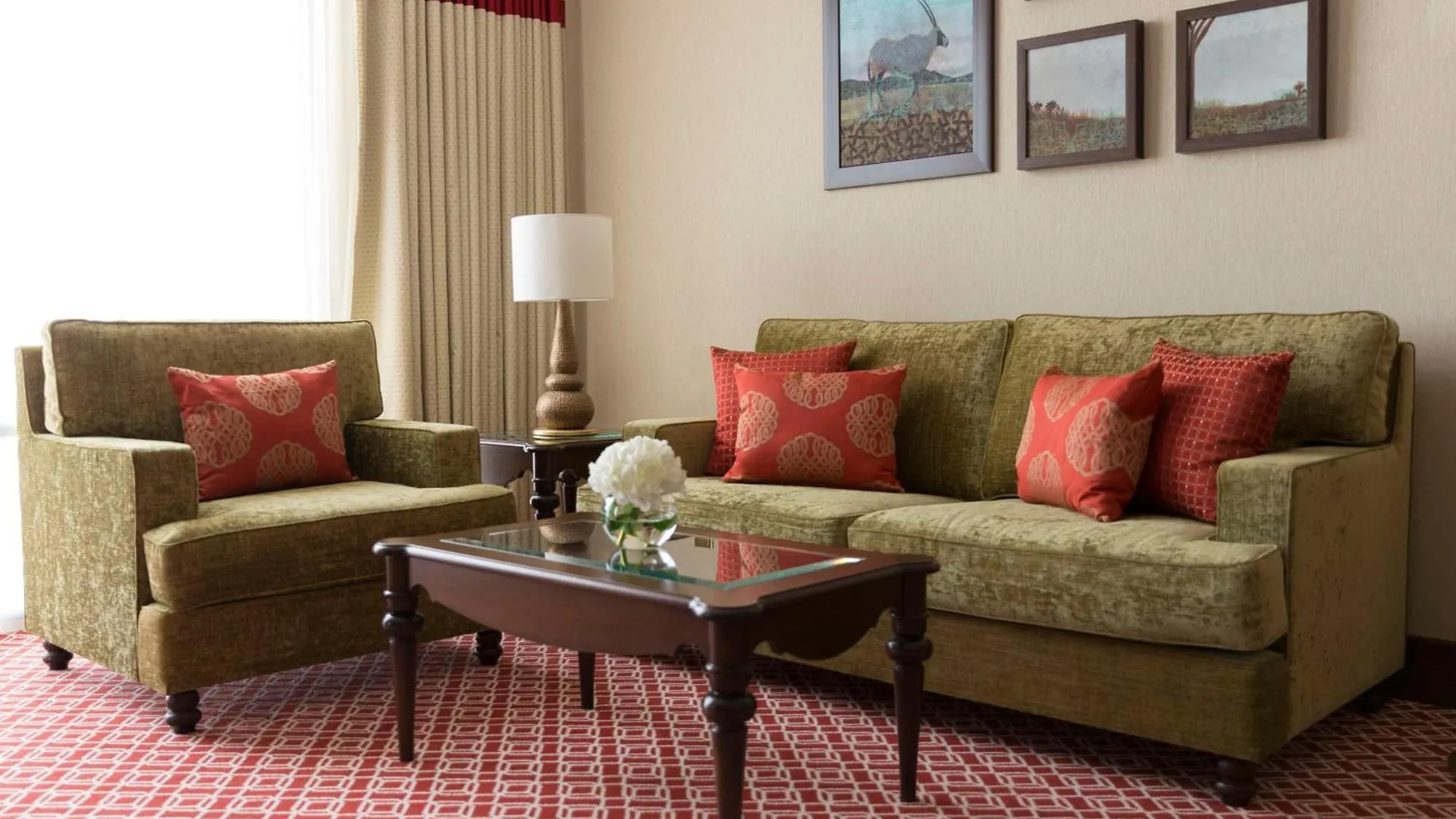 Es gibt 449 Zimmer, die über einen Flachbildfernseher mit Satellitenkanälen sowie eine Minibar verfügen. Sie sind zudem mit einem Schreibtisch ausgestattet. Eine Klimaanlage sorgen für den Komfort der Gäste. Neben einem Bidet, einer begehbaren Dusche und einer getrennten Toilette gehören zur Ausstattung des Badezimmers auch ein Haartrockner und eine Duschhaube. Einige Hotelzimmer bieten einen Ausblick auf den Persische Golf.